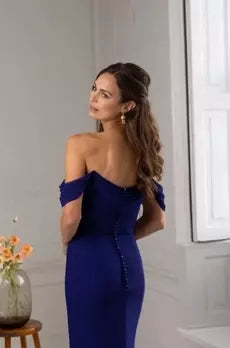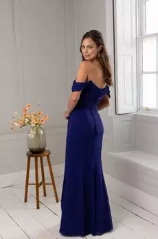 Alisa is a strapless bridesmaid dress with a modern twist. Incredibly sophisticated and figure-flattering, this strapless dress is complemented with a soft cowl to both the front and back of the bodice. We have added elegant floaty sleeve drapes over the arms and finished the style with a narrow belt at the waist and a stunning fit-and-flare skirt with a front split.