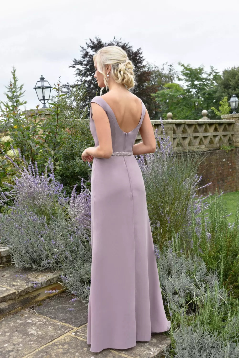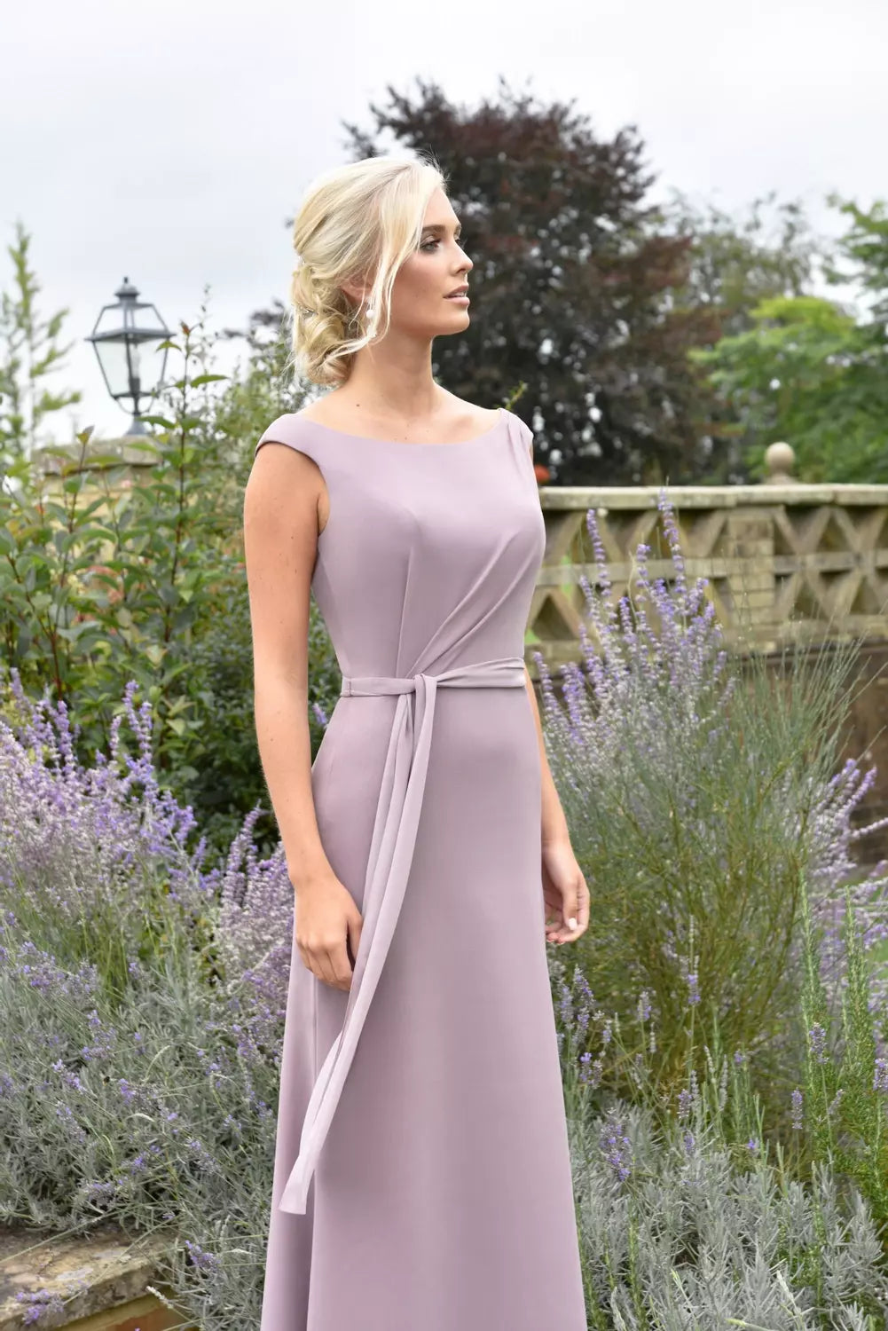 An elegant bateau neckline and slim a-line skirt is effortlessly elegant. Perfect when paired with one of our mix and match belts, which can be ordered separately in a matching shade or contrast shade. Pictured wearing bridesmaids belt EB02.